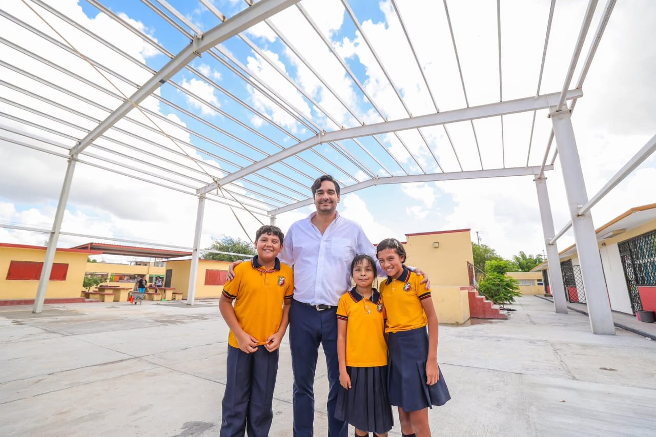 «Estamos convencidos de que invertir en infraestructura educativa es la mejor decisión para el futuro de Reynosa», aseguró el Presidente Municipal en la institución educativa que dirige la Maestra Ivis Elizeth Pesina Navarro.