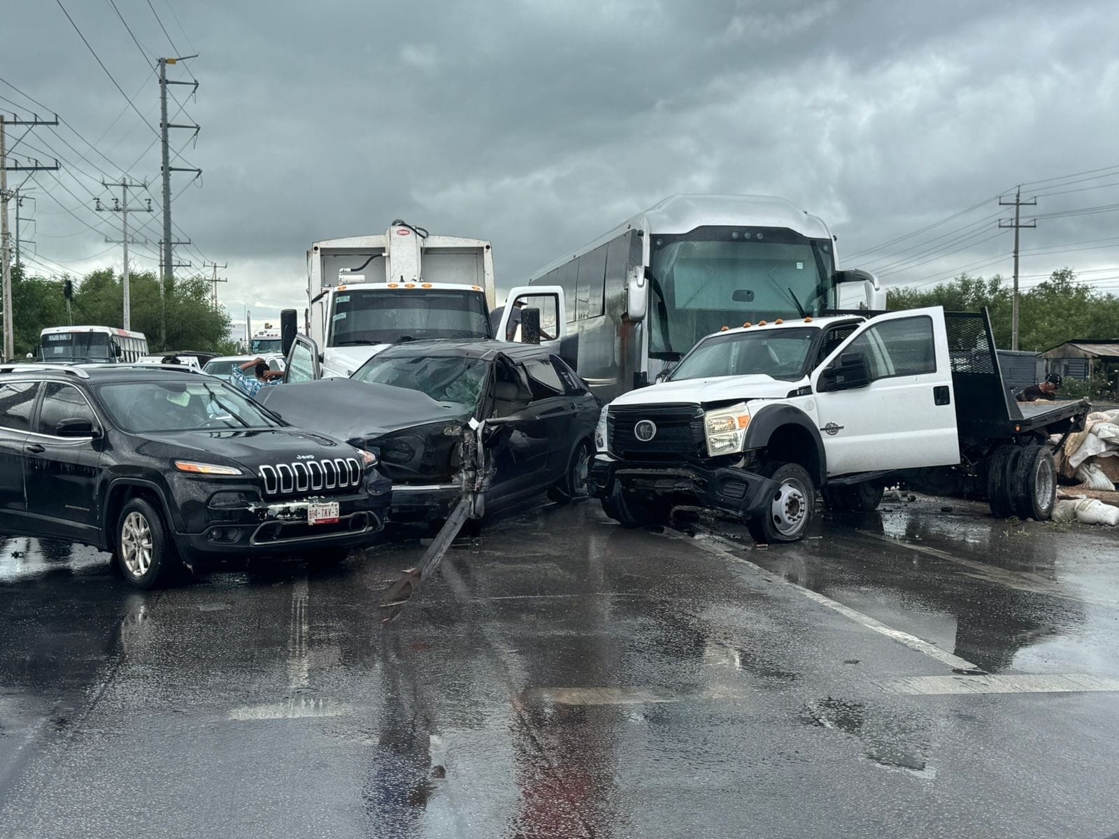 El fuerte golpe provocó que la camioneta fuera embestida por la parte trasera por un autobús de pasajeros con destino a McAllen, Texas, el cual transportaba a 22 personas. En la carambola también participaron un camión recolector de basura de Servicios Públicos Primarios y una camioneta Jeep negra.