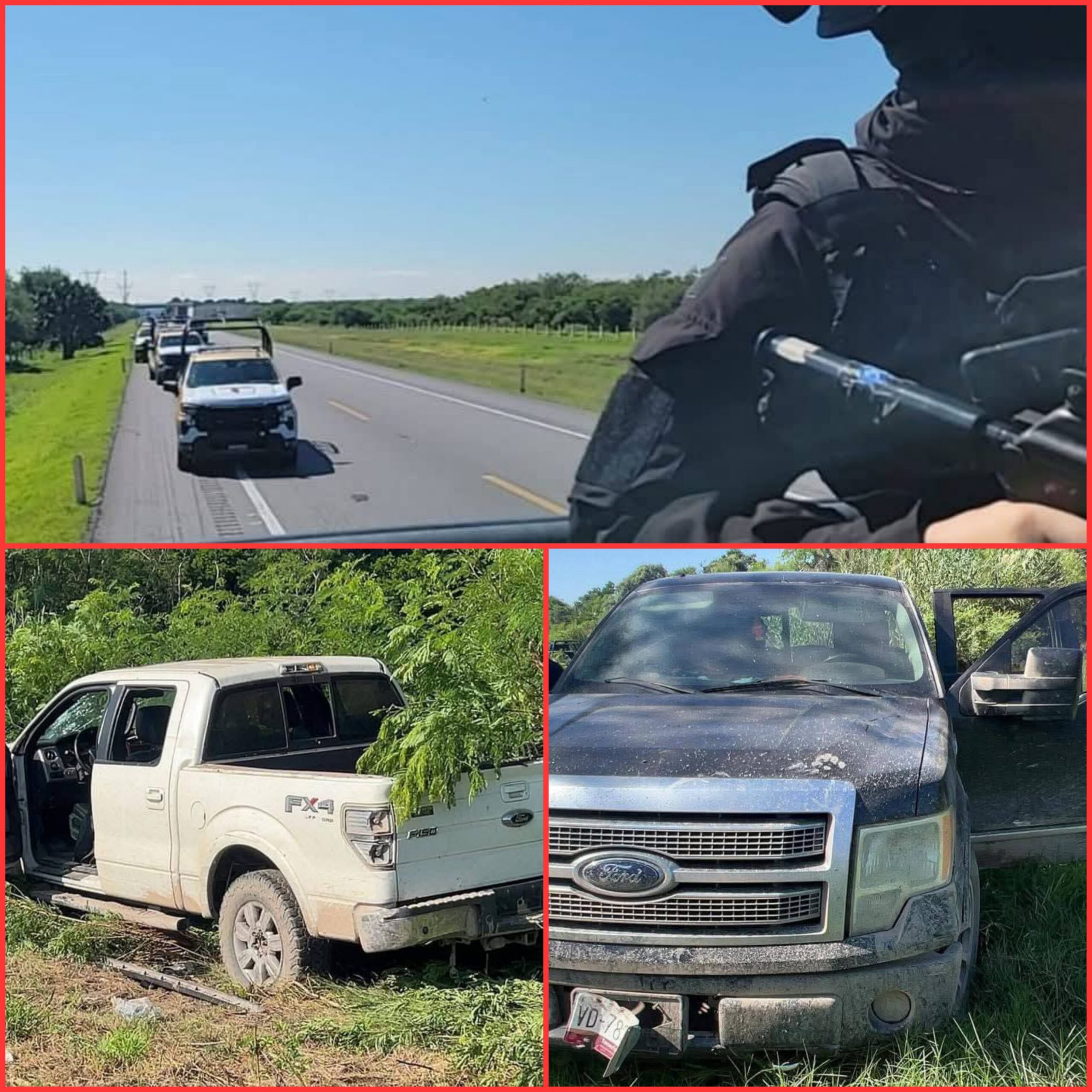 De acuerdo con el informe preliminar de la Guardia Estatal, la movilización comenzó luego de que una camioneta Ford F-150 blanca fuera detectada en actitud sospechosa en las inmediaciones del poblado de Laborcitas. Tras una persecución, los oficiales lograron interceptar la unidad y detener a dos sujetos que portaban armas de fuego.