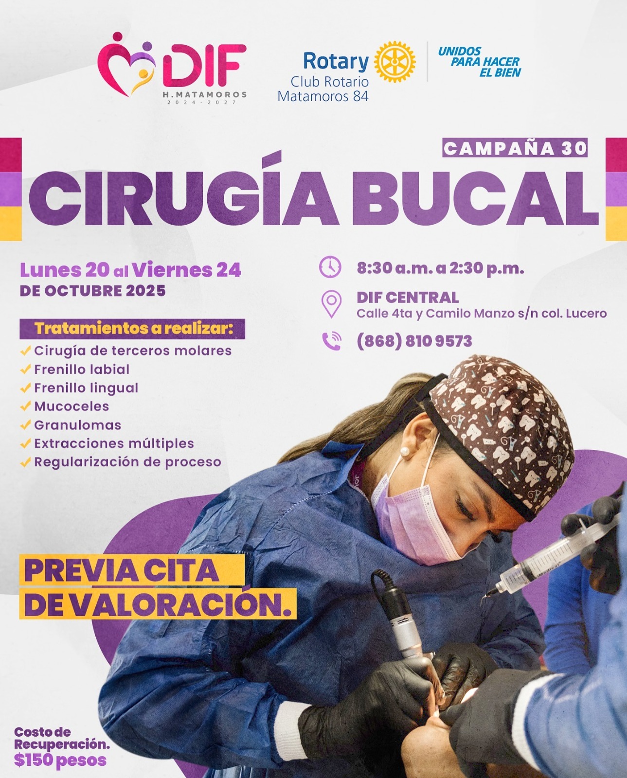 .- DIF Matamoros y Club Rotario ofrecen consultas y cirugías dentales gratuitas para la comunidad, ¿cómo acceder al beneficio?