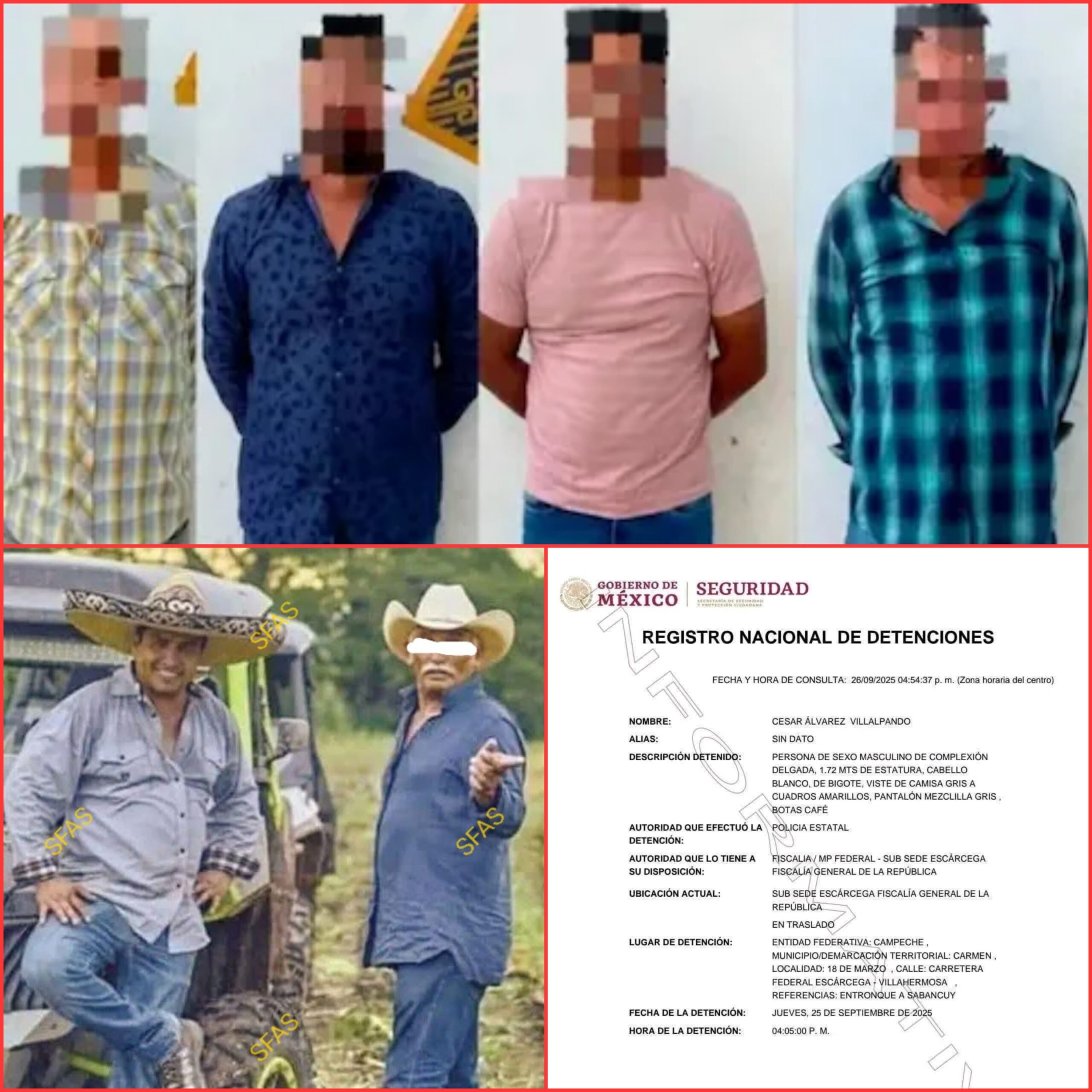 El aseguramiento quedó asentado en el Registro Nacional de Detenciones, el cual documentó que el operativo se llevó a cabo el 25 de septiembre a las 16:05 horas. Posteriormente, César “N” y sus acompañantes fueron puestos a disposición de la Fiscalía General de la República (FGR) en Escárcega, donde enfrentan cargos por portación de armas de fuego, violaciones a la Ley Federal de Armas y Explosivos, así como por la posesión del vehículo con reporte de robo.