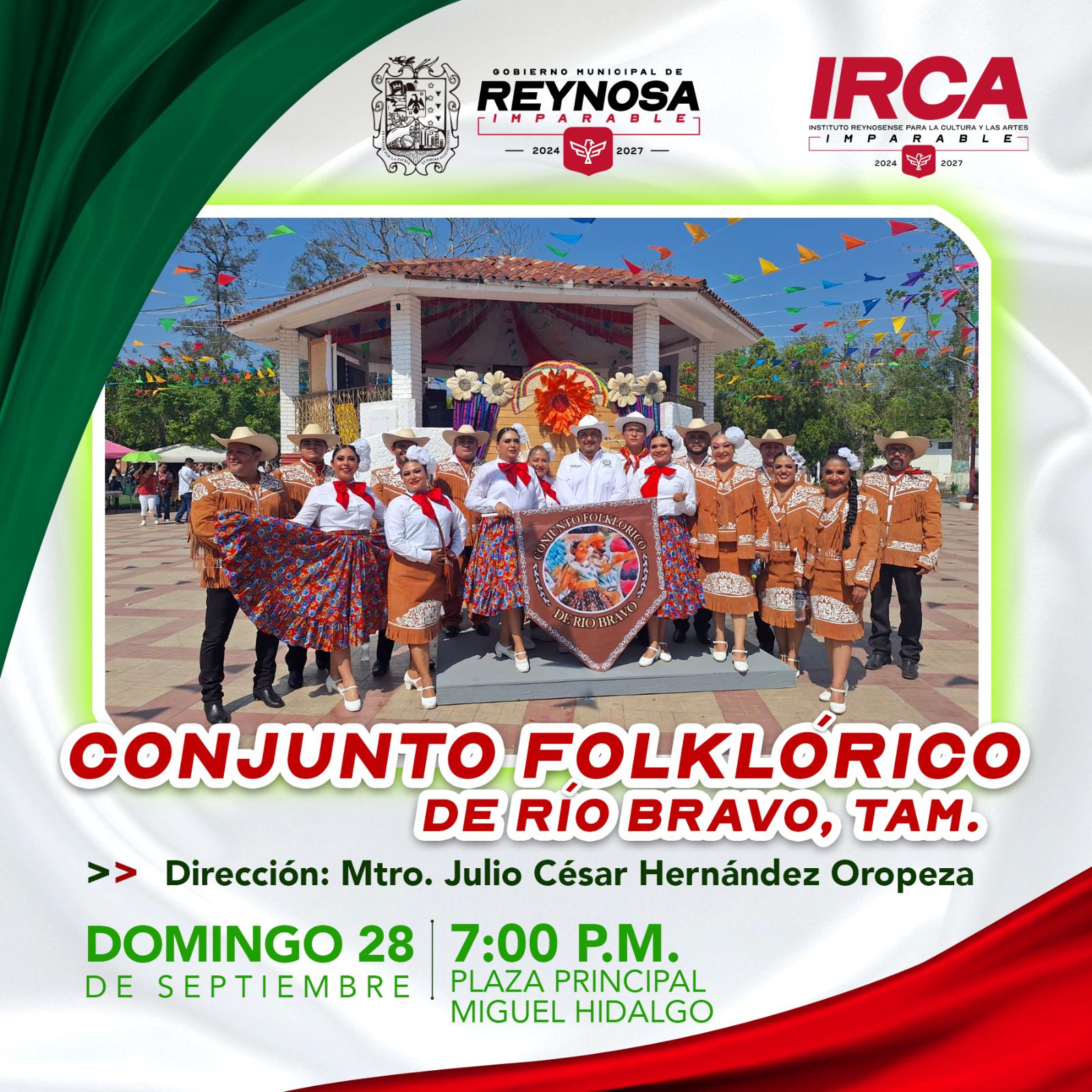 Atendiendo las instrucciones del Alcalde Carlos Peña Ortiz, el Instituto Reynosense para la Cultura y las Artes presenta este domingo 28 de septiembre su agenda artística en plazas públicas de la ciudad.