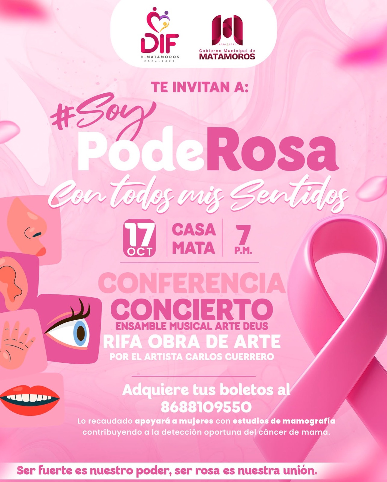En el marco del Mes de Sensibilización sobre el Cáncer de Mama, el Sistema DIF Matamoros anunció la conferencia-concierto “Con todos mis Sentidos”, un evento con causa que busca recaudar fondos para ofrecer mastografías gratuitas a mujeres de la región.