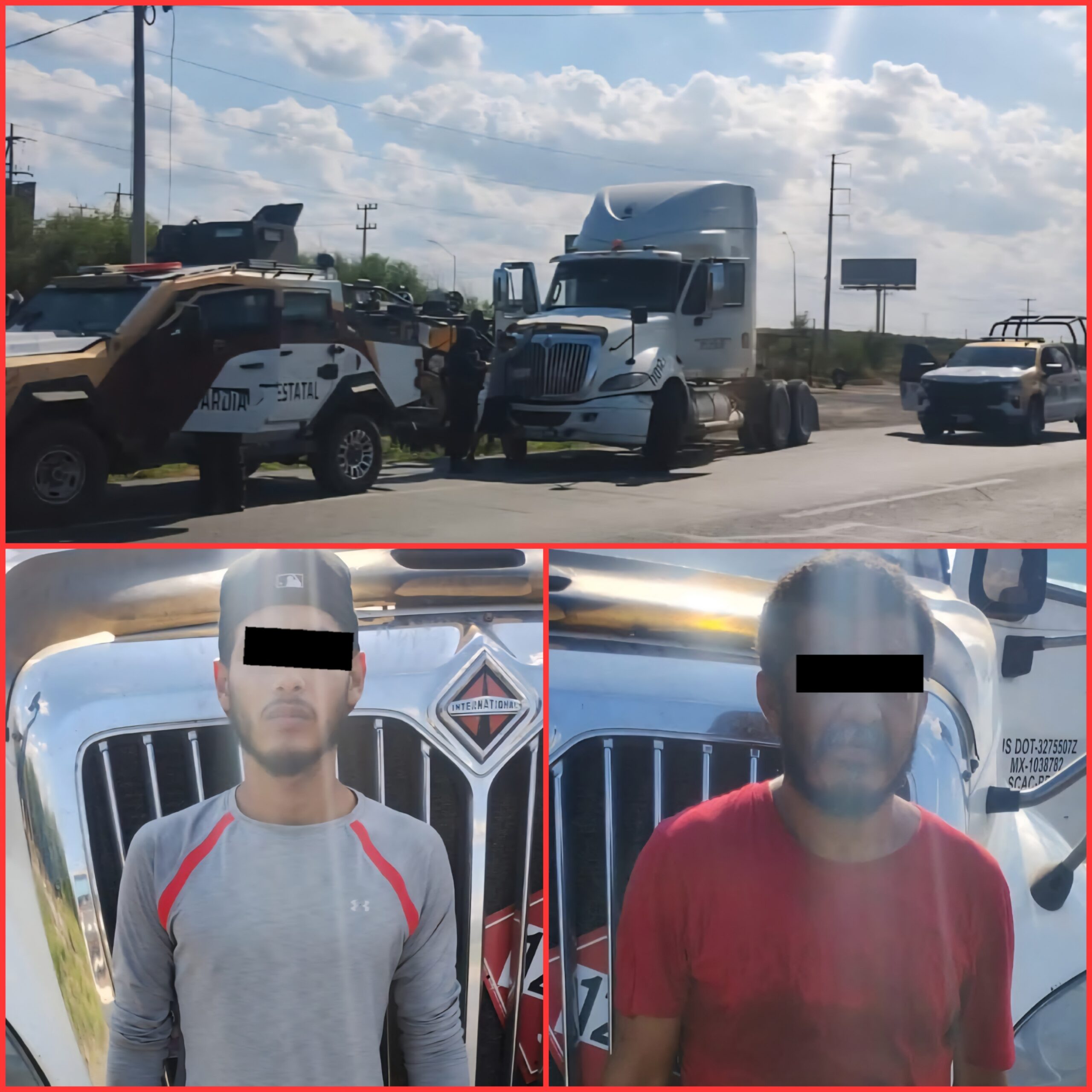 Elementos de la Guardia Estatal lograron la detención de dos hombres y el aseguramiento de un tractocamión con reporte de robo sobre la carretera Reynosa–Monterrey, a la altura de la colonia San Valentín. El operativo se llevó a cabo tras una alerta emitida por el sistema de Monitoreo C5, que ubicó la pesada unidad circulando con aparente normalidad pese a tener un reporte vigente de robo.