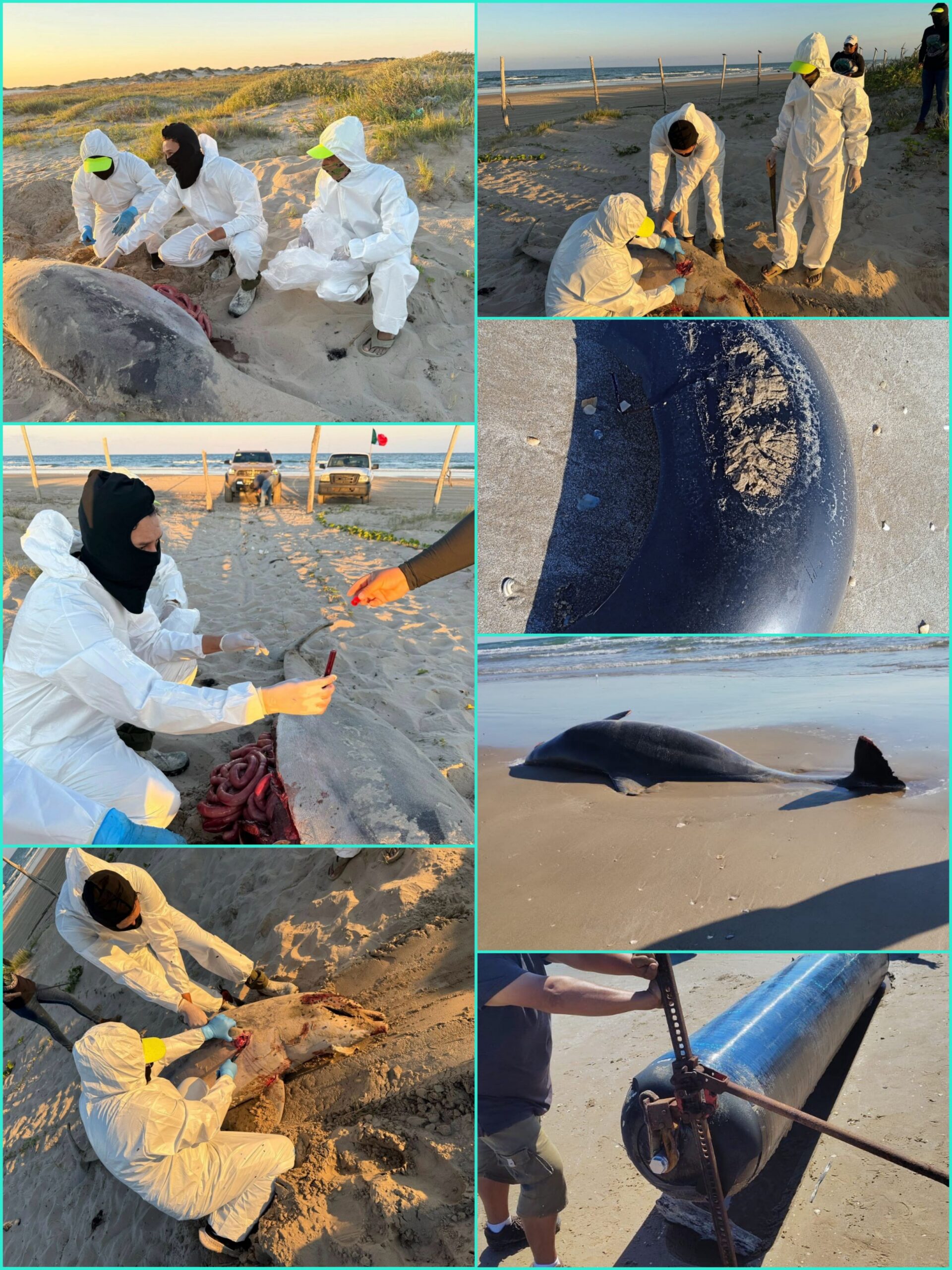 Durante la tarde del miércoles, personal de la Facultad de Veterinaria de la Universidad Autónoma de Tamaulipas recogió muestras de uno de los delfines muertos para realizar una necropsia que determine si las lesiones y quemaduras observadas están relacionadas con los residuos del cohete. Los resultados serán entregados a la Procuraduría Federal de Protección al Ambiente (PROFEPA) y a la Secretaría de Medio Ambiente y Recursos Naturales (SEMARNAT).