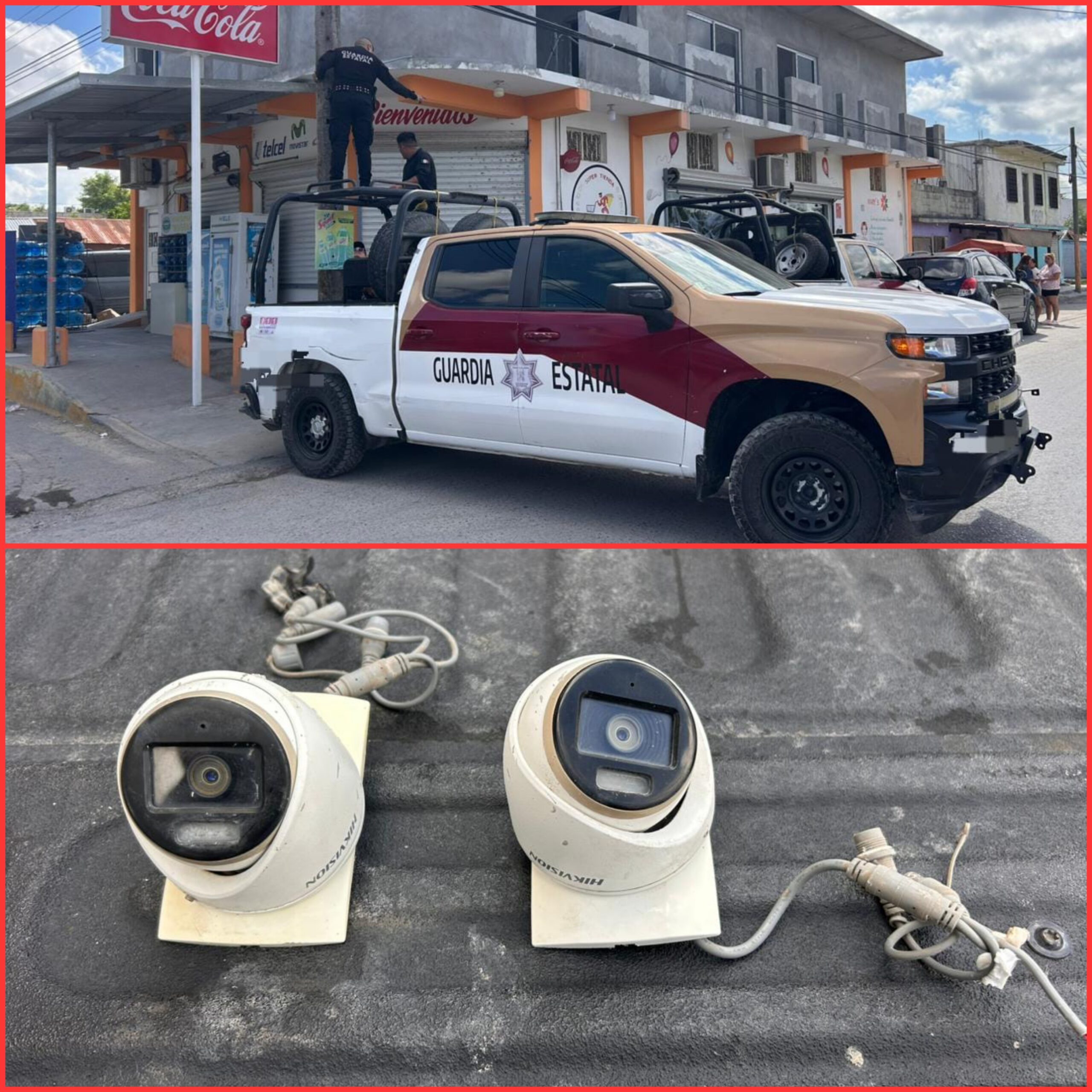 Elementos de la Guardia Estatal retiraron dos cámaras de videovigilancia colocadas de manera irregular en un poste de telefonía en la colonia México, en Matamoros. La acción se llevó a cabo durante un recorrido de seguridad y vigilancia, tras detectar que los aparatos estaban conectados a un establecimiento comercial, el cual se encontraba cerrado al momento de la inspección.