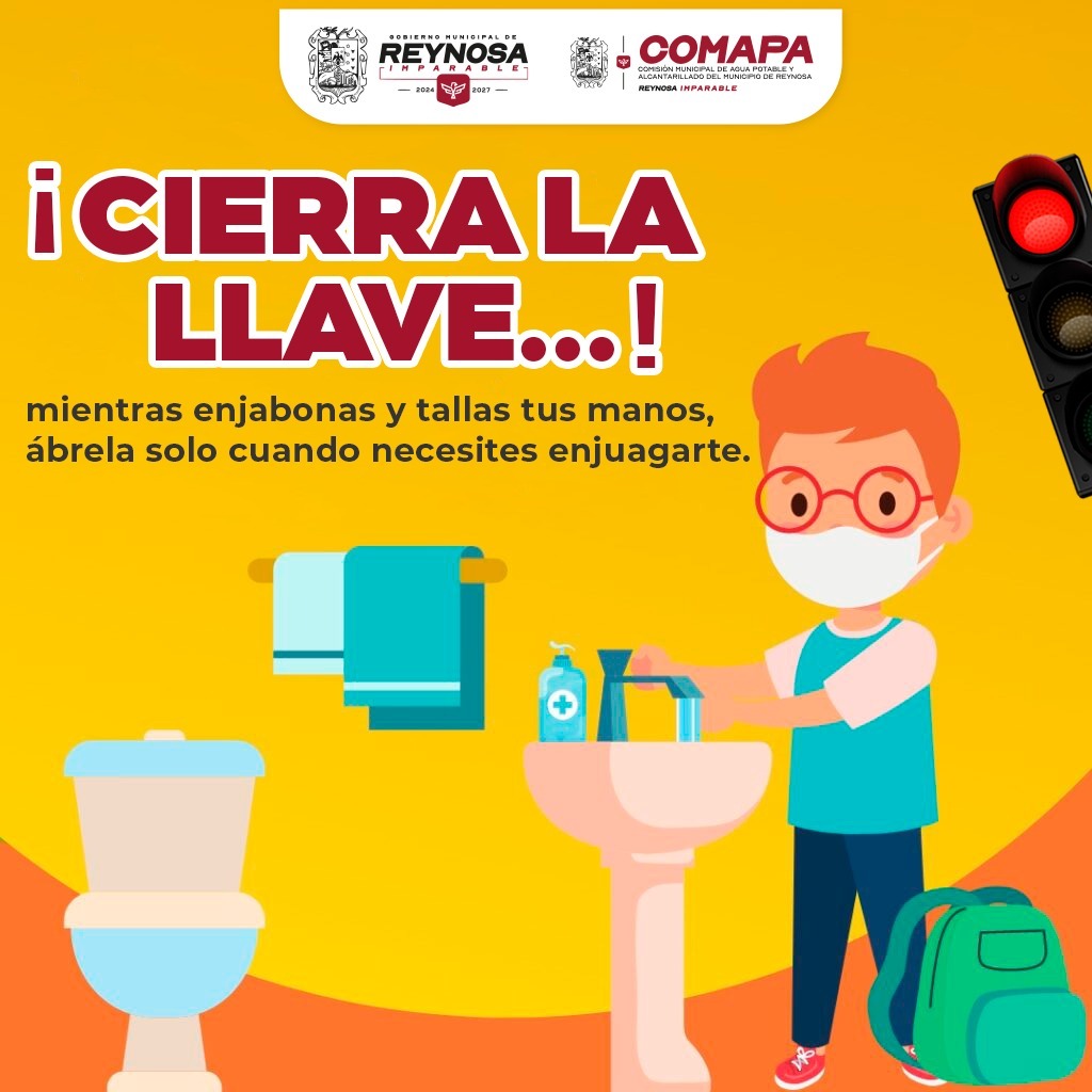 La Comisión Municipal de Agua Potable y Alcantarillado de Reynosa hace un exhorto a los usuarios a adoptar hábitos responsables en el uso del agua, tales como cerrar la llave mientras se enjabonan las manos o lavan los trastes, con el fin de fomentar el ahorro del vital líquido en los hogares.