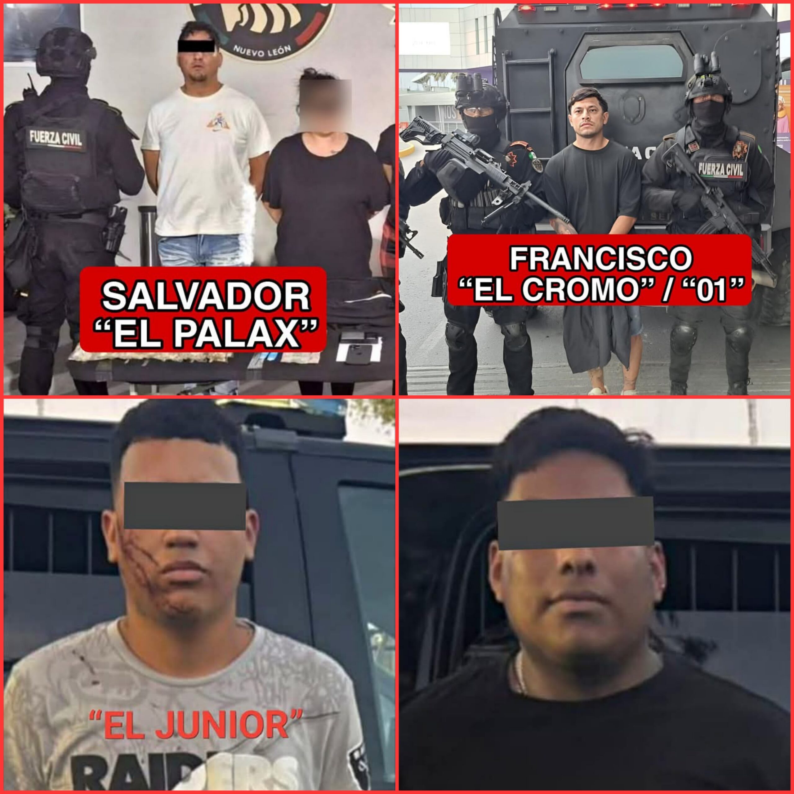 Se confirmó que Gilberto cuenta con una orden de aprehensión por homicidio y ha sido vinculado a diversos ataques armados registrados en la zona metropolitana, mientras que “El Junior” ya había sido detenido meses atrás, pero recuperó su libertad poco después.