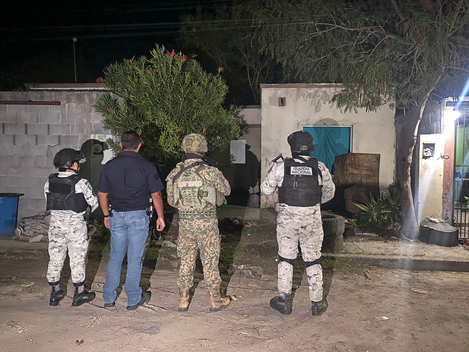 La Fiscalía General de Justicia del Estado de Tamaulipas (FGJET) ejecutó una orden de cateo en un domicilio del fraccionamiento Santa Fe, en Reynosa, como parte de las acciones contra el narcomenudeo. En el operativo participaron también elementos de la Guardia Nacional y de la Secretaría de la Defensa Nacional (SEDENA), quienes brindaron apoyo táctico y de seguridad perimetral.