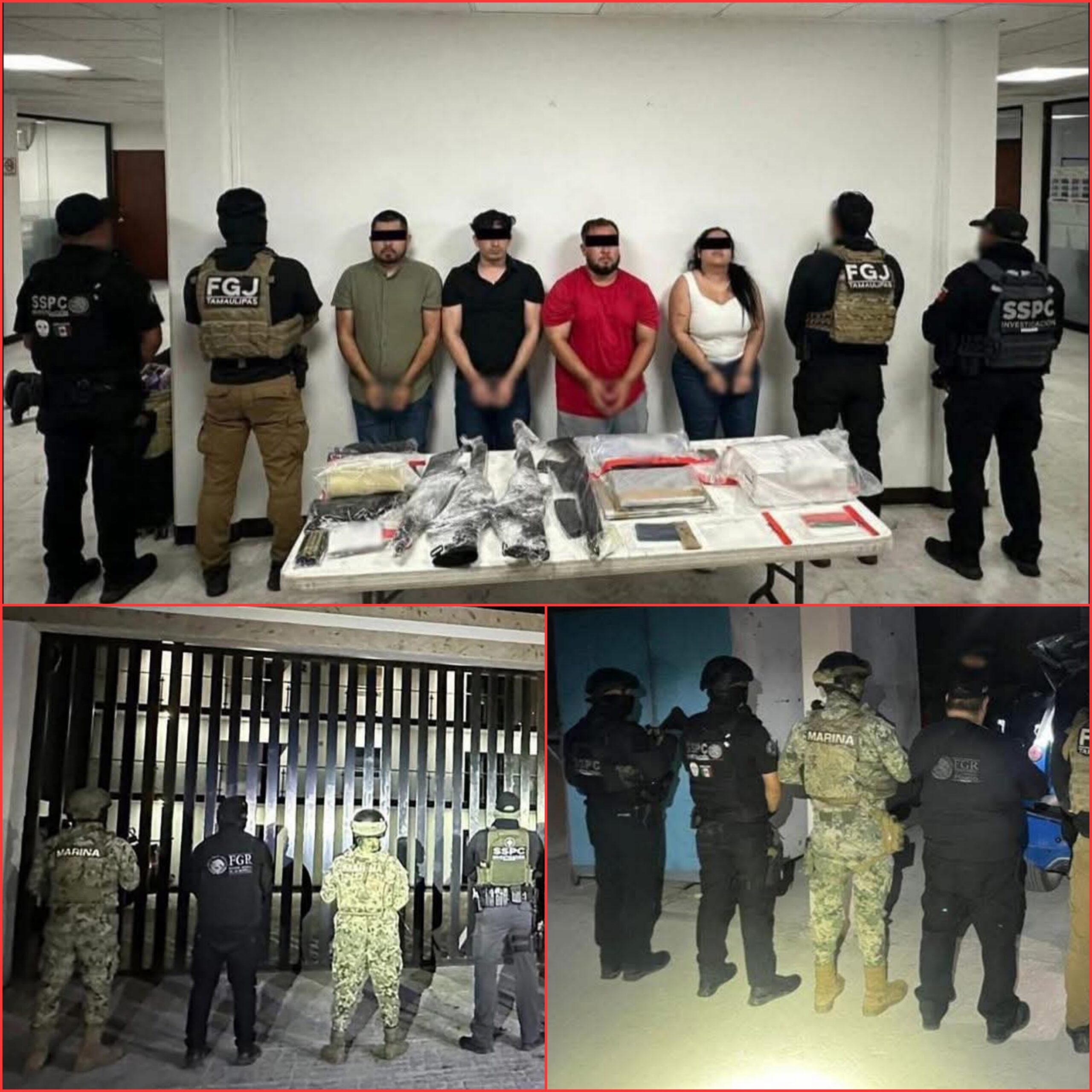 En una acción coordinada entre elementos de Defensamx, Secretaría de Marina, Fiscalía General de la República, Guardia Nacional, Secretaría de Seguridad y Protección Ciudadana y la Fiscalía General de Justicia del Estado de Tamaulipas, fueron detenidas cuatro personas presuntamente vinculadas a un grupo criminal que opera en la región norte del estado.