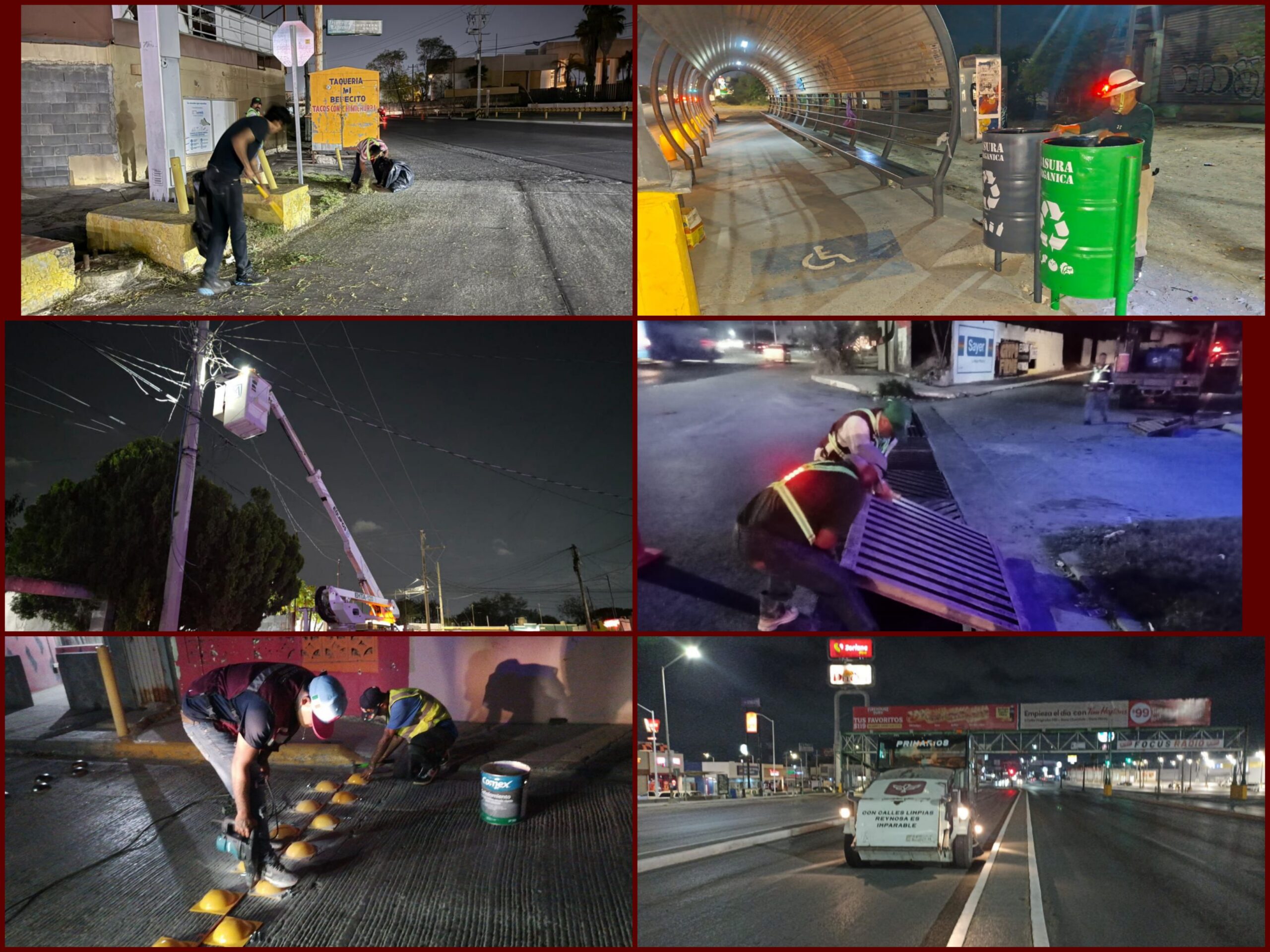 .- Operativos aceleran mantenimiento urbano con cuadrillas que trabajan de noche para avanzar sin afectar el tráfico y mejorar la imagen de la ciudad.