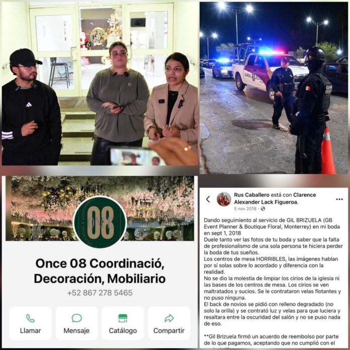 Los denunciantes recordaron que desde 2018 existían advertencias públicas sobre presuntas estafas cometidas por el mismo individuo en Monterrey, donde operaba bajo el nombre GB Event Planner & Boutique Floral. Tras múltiples conflictos con clientes, habría huido hacia Nuevo Laredo. “Está súper boletinado en Monterrey. Huyó de allá porque hizo lo mismo”, denunció Brenda.