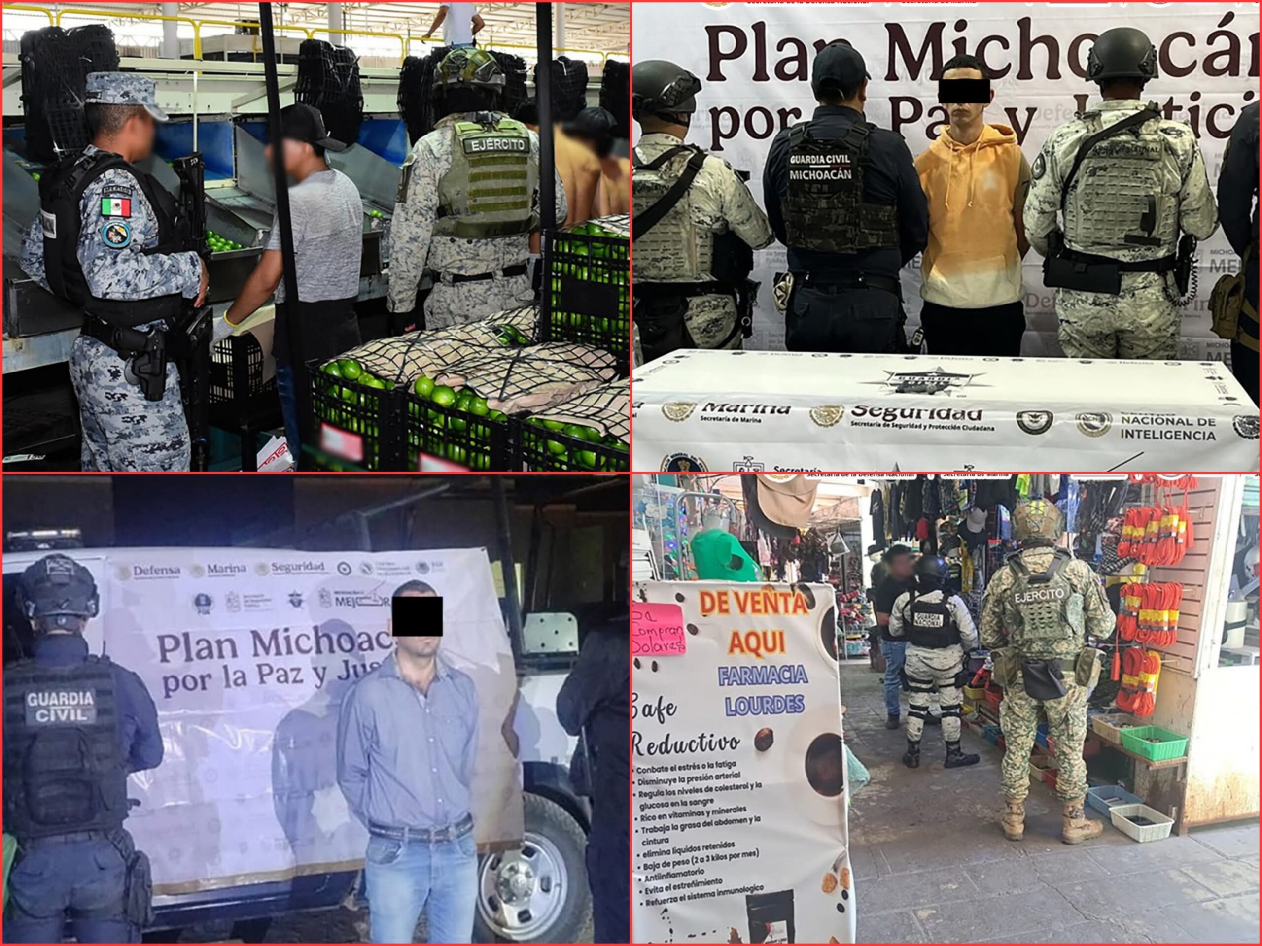 Como resultado de las acciones del Plan Michoacán por la Paz y la Justicia, fuerzas federales y estatales intensificaron los operativos de seguridad en distintas regiones del estado, logrando en un mes la detención de ciento ochenta personas y el aseguramiento de un importante arsenal, además de explosivos, vehículos y materiales utilizados por la delincuencia organizada.
