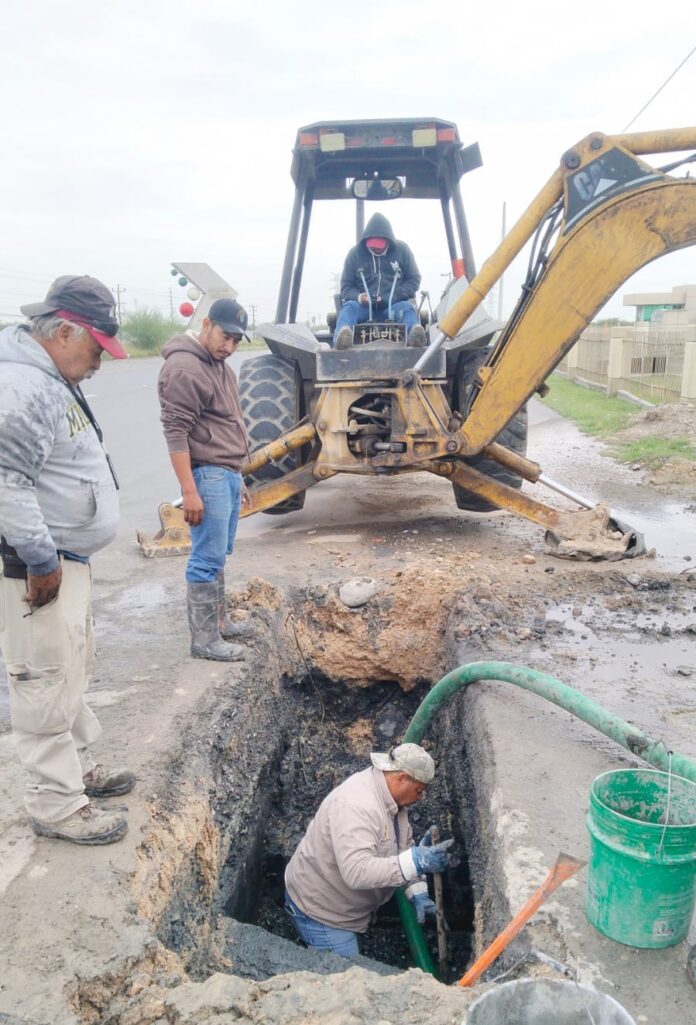 La Comisión Municipal de Agua Potable y Alcantarillado de Reynosa lleva a cabo la reparación de una fuga de agua residual proveniente del emisor del Cárcamo 14, sobre la Carretera Reynosa–Río Bravo, con el objetivo de atender de manera oportuna la situación y evitar mayores afectaciones en la zona.