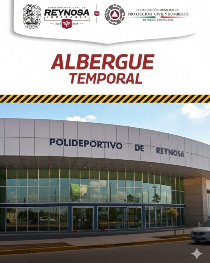 El Gobierno del Alcalde Carlos Peña Ortiz habilitó el Albergue Temporal en el Polideportivo Reynosa, ubicado en la carretera a Matamoros, colonia La Escondida, para brindar protección a personas vulnerables debido a las bajas temperaturas registradas desde esta madrugada.