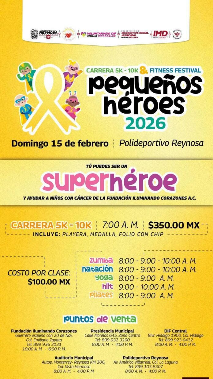 Conviértete en un superhéroe y corre por una gran causa, prepárate para la Carrera 5K-10K & Fitness Festival Pequeños Héroes 2026, que se llevará a cabo en el Polideportivo Reynosa, El domingo 15.de febrero a partir de las 7:00 de la mañana.