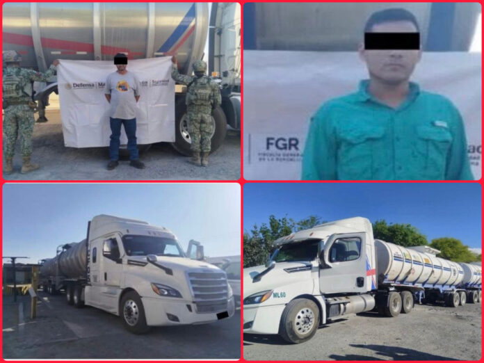 Elementos del Ejército Mexicano detuvieron a dos operadores de tractocamiones que transportaban un total de 129 mil litros de hidrocarburo de presunta procedencia ilícita en el municipio de Jaumave, como parte de las acciones de vigilancia desplegadas en carreteras de Tamaulipas.