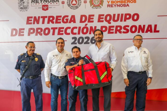 Con la finalidad de dotar de más equipos para la seguridad personal de los elementos de Bomberos de Reynosa, el Presidente Municipal Carlos Peña Ortiz entregó al Coordinador de Protección Civil, Javier Iván Lam Cantú los utensilios vitales para el desarrollo de su labor, Casco, Escafandra, Chaquetón, Tirantes, Guantes, Pantalonera, Botas y mochila para transportarlos.