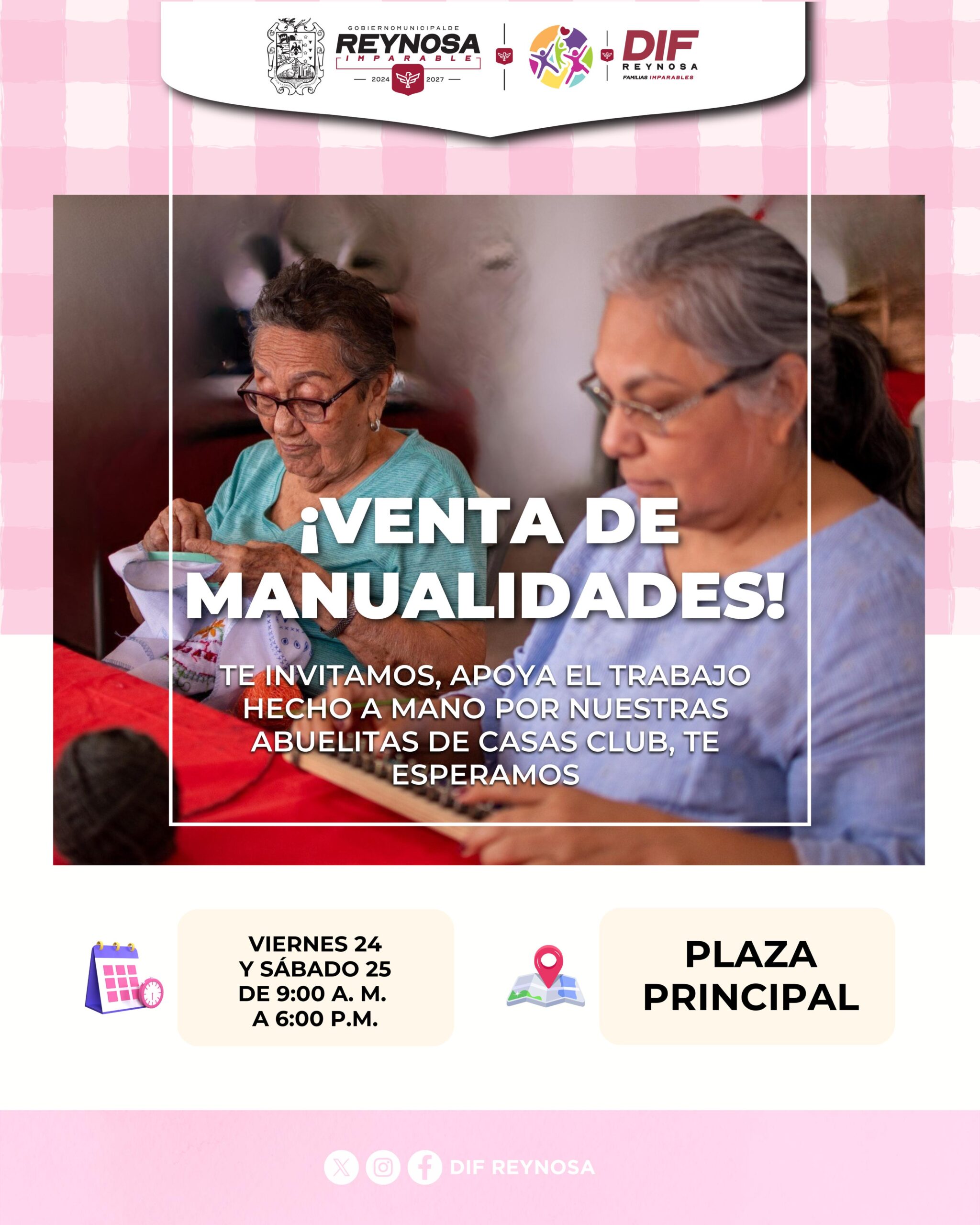 El Sistema DIF-Reynosa que preside Carlos Luis Peña Garza, invita a la ciudadanía a asistir al bazar de manualidades de Casa Club del Adulto Mayor, con el objetivo de apoyar y reconocer el talento de las abuelitas que participan en estos espacios.